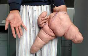 - Daerah supraorbital membesar, telingan dan hidung menebal